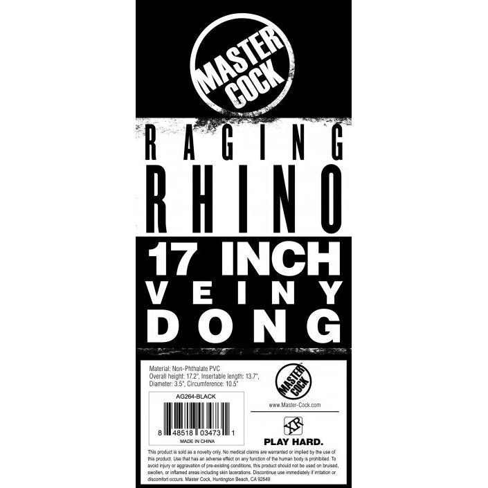 Boasting over 13 inches of insertable length and up to 3.5 inches of insertable diameter, the Raging Rhino dildo is a force to be reckoned with! It is not all about size though - this monster member features a dramatic coronal ridge and bulging veins that will massage your insides... if you can manage to fit it in. Explore extreme vaginal or anal stretching with a dong that tests your limits to the max! The strong suction cup base allows you to mount it to a hard, smooth surface and impale yourself. This phthalate-free material is compatible with all types of lubricant. Clean after use with warm water and a mild soap or toy cleaner.